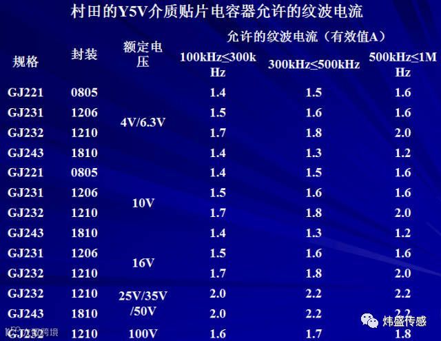 第二类介质陶瓷电容器由于电容量相对第一类介质电容器大得多,对于用于滤波的μF级的陶瓷电容器通常的加载交流电压在1V以下,不可能加载到额定交流电压值。因此第二类介质电容器大多讨论所允许加载的纹波电流。