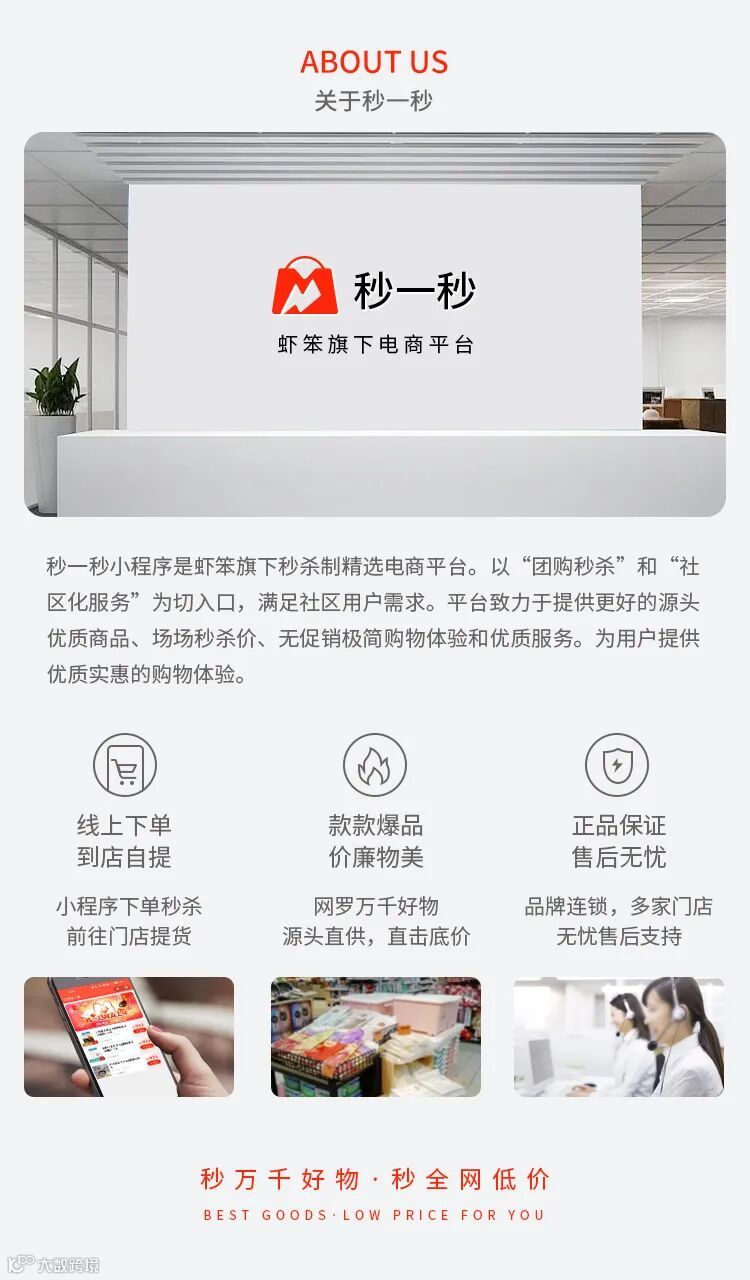 虾笨秒一秒是隶属于虾笨鲜生旗下的极简秒杀制团购平台。作为一家新兴的电商企业,虾笨秒一秒致力于为消费者提供高品质、低价格的商品。公司的愿景是让更多的人享受购物的乐趣,并通过创新的销售模式和合作伙伴关系不断拓展市场。虾笨秒一秒凭借其强大的供应链能力和优质的服务,在行业内迅速崭露头角。未来,虾笨秒一秒将继续努力,为消费者带来更多福利和惊喜。