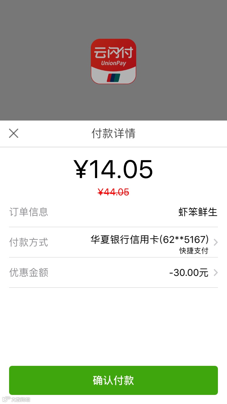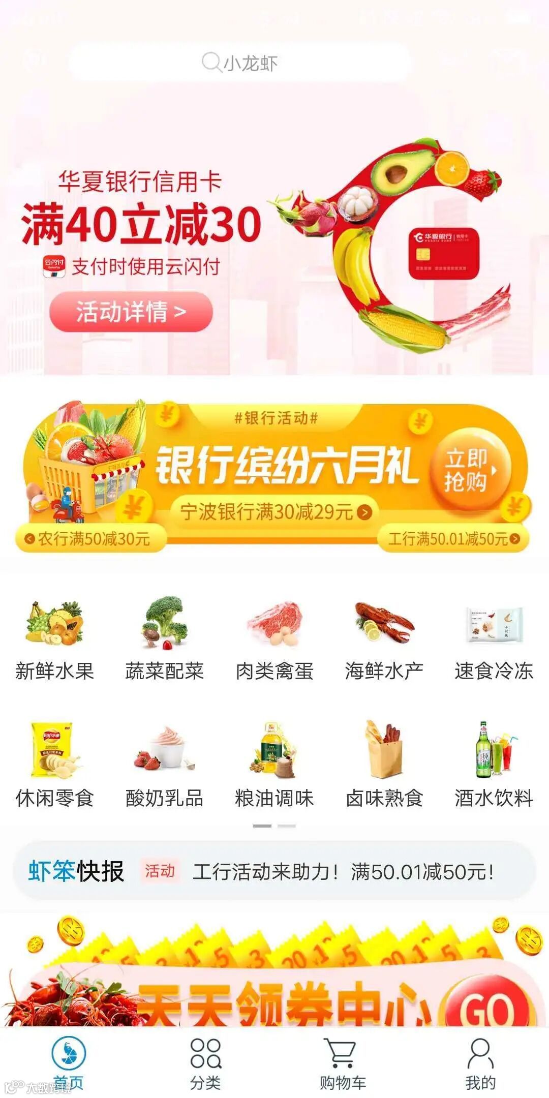 办理路径:下载云闪付—绑定华夏银行信用卡—打开虾笨鲜生APP—选择商品—支付选择云闪付—享受满40减30元