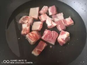 1、排骨冷水下锅,焯水