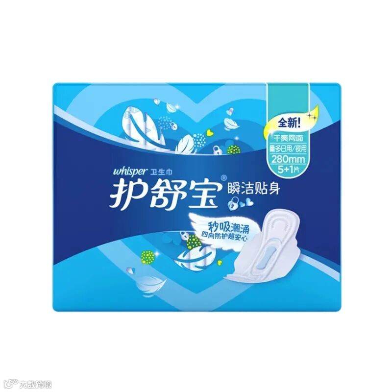 护舒宝瞬洁丝薄干爽夜用5片284mm卫生巾