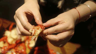 不顾矜持的开始吸食虾肉