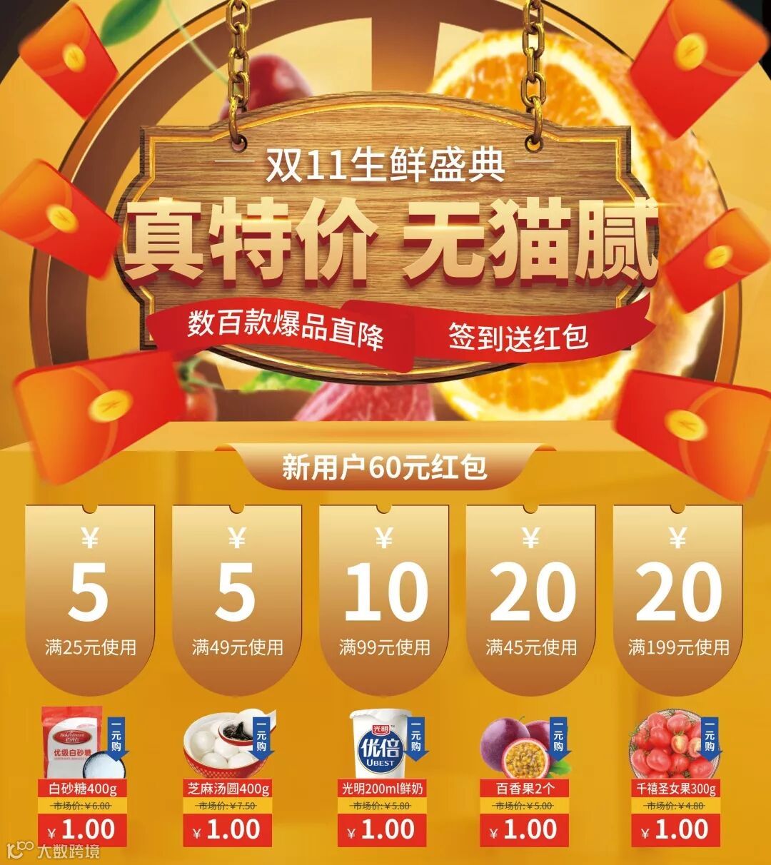 双十一生鲜盛典,一元超值购!