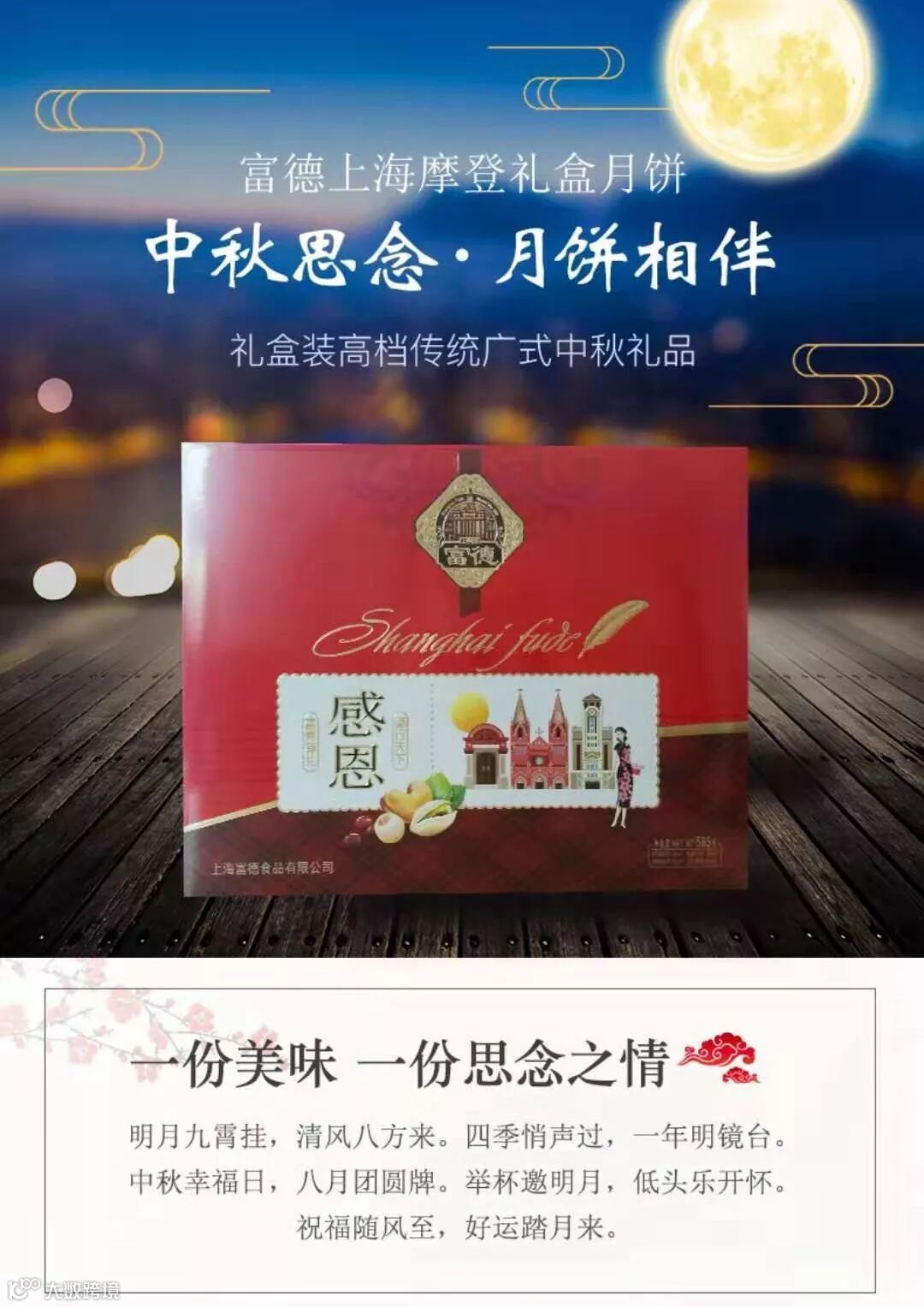 富德上海摩登礼盒月饼,礼盒装高档传统广式中秋礼品。买一送一。它的选料和制作技艺无比精巧,其特点是皮薄松软、造型美观、图案精致、花纹清晰、不易破碎、包装讲究、携带方便,是人们在中秋节送礼的佳品,也是人们在中秋月圆之夜不可缺少的佳品。