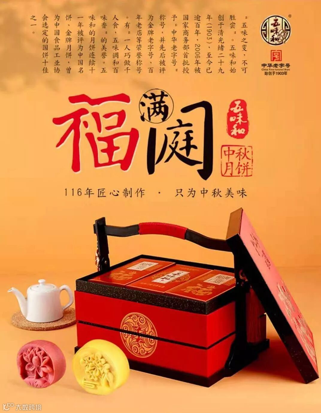 福满门庭月饼礼盒,116年来匠心制作,只为中秋美味。1903年五味和诞生于杭州庆春街小福清巷口。江南味·五味和,一人巧做千人食,月饼潮糕酥香糯。