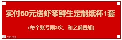 实付金额满60元送定制纸杯 1 桶