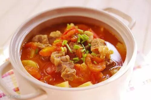 4、酱汁炒好之后,放入牛肉翻炒,然后倒入牛肉汤,炖煮!