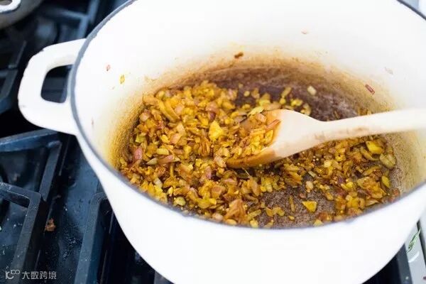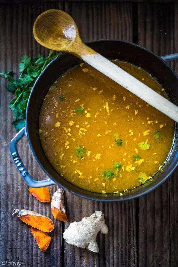 姜黄杂豆面 图片源自www.feastingathome.com做法:1.先将萝卜丁和洋葱丁倒入锅中翻炒,加入盐和孜然。2.将炒好的蔬菜放入鸡汤当中,在加入黄姜末和黄豆,煮熟。