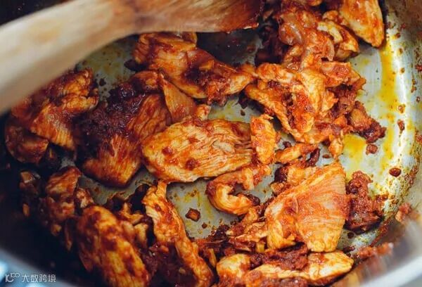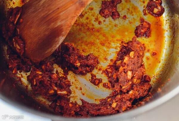 泰式咖喱牛肉面 图片源自thewoksoflife.com1.先将大蒜剥开,并且把生姜洗净切开,将泰式红咖喱放入其中炒熟。2.加入鸡肉在其中,继续翻炒。