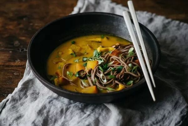 蘑菇味增荞麦面 图片源自www.dollyandoatmeal.com 姜黄杂豆面