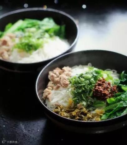 煮米粉。要一碗一碗的煮,水刚开,即可捞起来。不宜久煮。直接捞在碗里。泡酸菜切小丁