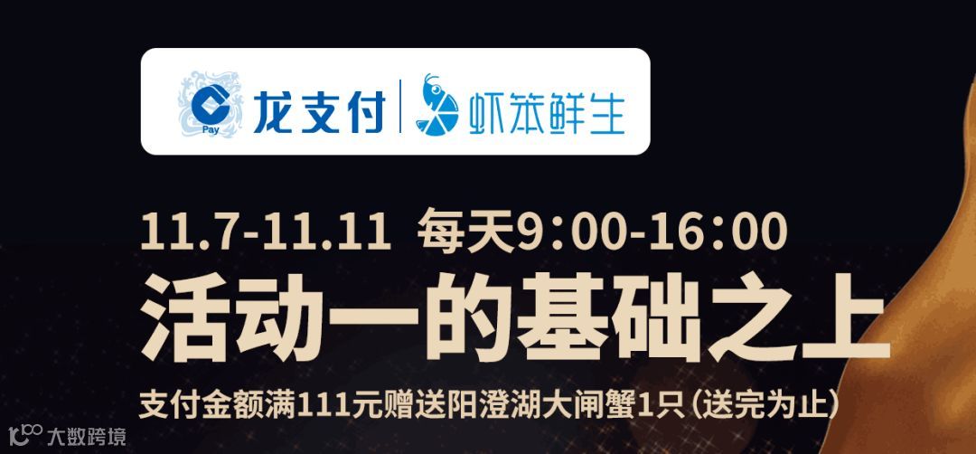 活动内容:使用建行龙支付,订单支付金额满111元赠送价值38元阳澄湖大闸蟹1只(送完即止)