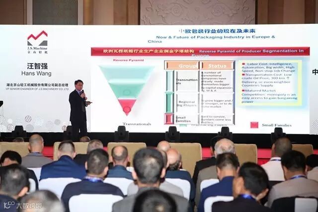 北京山轻工机械机械股份有限公司副总经理汪智强先生结合自己多年的国外市场开拓经验,为大家讲述了中国瓦楞机械市场化国际化的整合之路,并为大家带来的京山轻机的欧洲瓦楞机械市场真实调研数据。