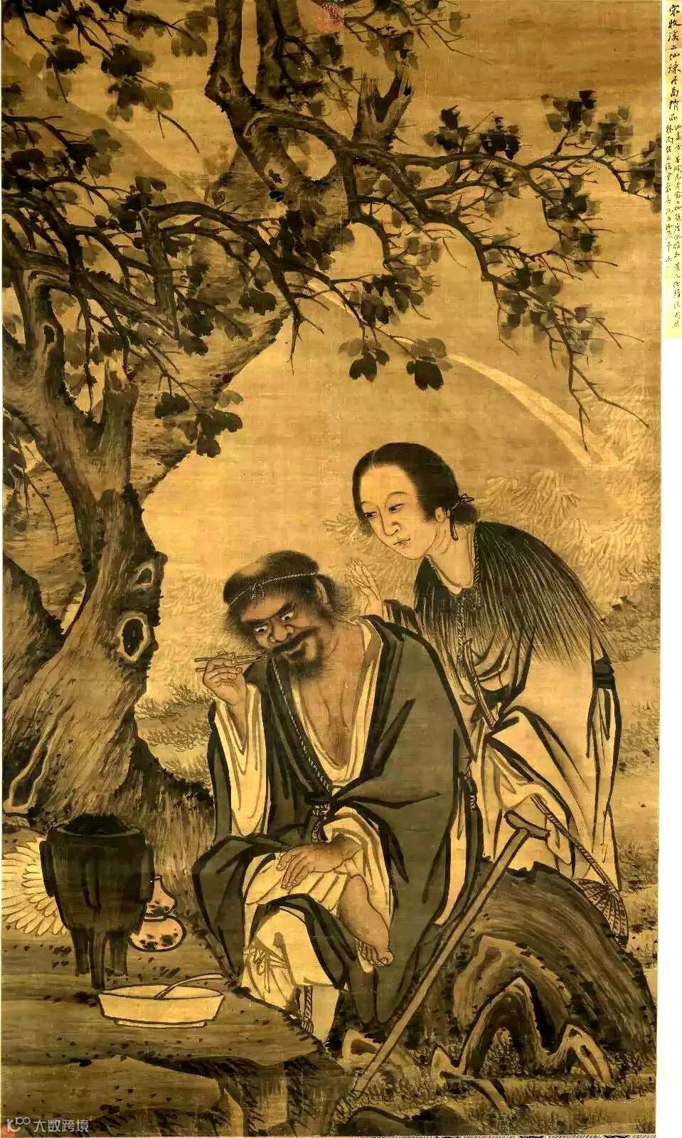 佚名 二仙炼丹图 设色绢本 立轴 法国私人收藏