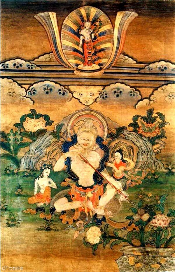 局部图为萨惹哈。传说中萨惹哈曾是一个制箭师,所以唐卡中的萨惹哈通常都是以执箭的形象出现。在其他一些唐卡中,箭还用来象征萨惹哈的传承。