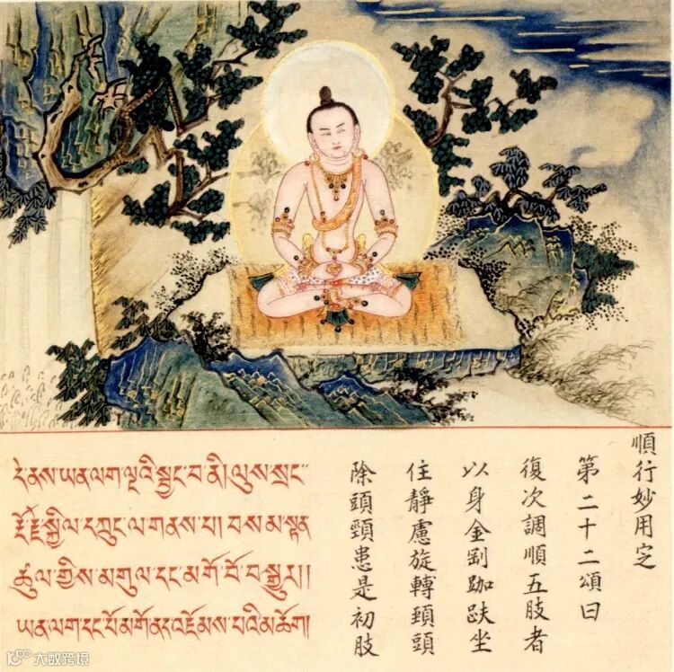 金刚跏趺等持印,缩腹靠脊任持风,
