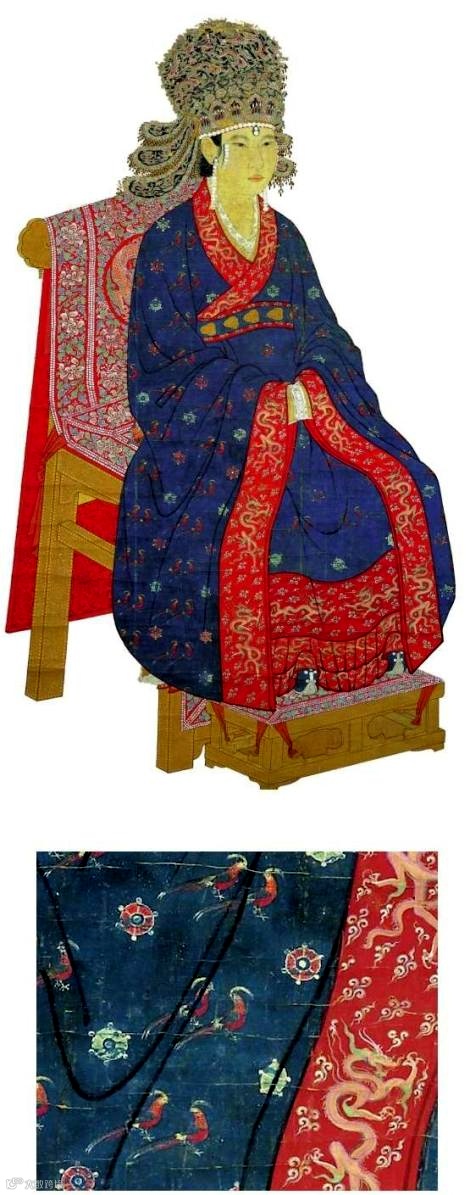 宋神宗皇后头戴凤冠,衣服上也有百只凤凰,台北“故宫博物院”藏。