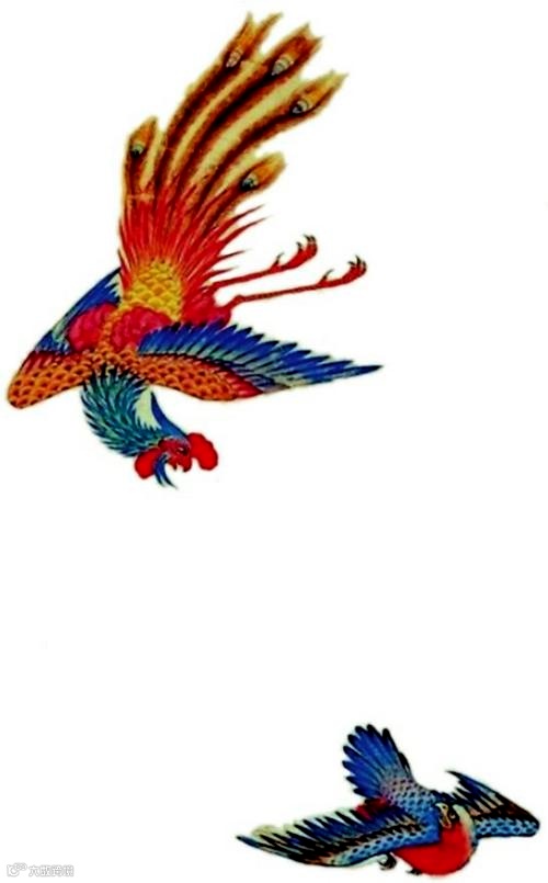 现实中的一些鸟为凤凰提供了造型依据,它们与凤凰有着局部相似性,而古代文献记载的某些神鸟也与凤凰有相似之处,而且因为“神”,常被看作是凤凰的一类。如凤凰喜火,“四灵”中的朱雀也是火的象征,凤凰出于南方的丹穴之山(《山海经》),朱雀也是南方的象征,所以李时珍《本草纲目》说:“凤,南方朱鸟也。”玄鸟也被看作是凤凰的一种,它是天帝的使者。所谓“天命玄鸟,降而生商”,商人的始祖简狄吞了鸟蛋,而生了契,也就是商人的男祖先。玄是黑 色,商人信仰的主要是黑色的鸟;《尚书大传》说武王伐纣,出现了“赤乌”,周人信奉的是红色的鸟。