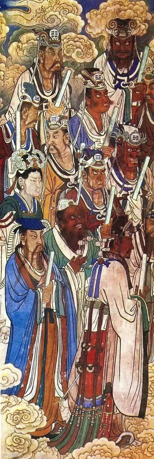 元 永乐宫壁画 朝元图(局部)雷公、电母、雨及八卦诸神