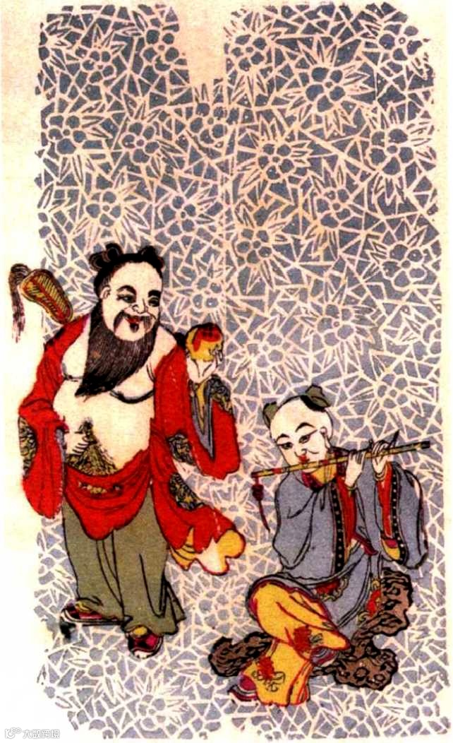 《汉钟离与韩湘子》 木版年画
