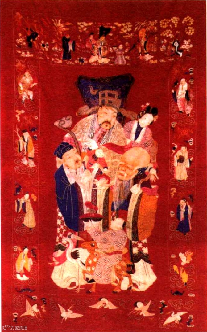 八仙祝寿 台湾绣品 中为福禄寿三星,八仙分居左右。