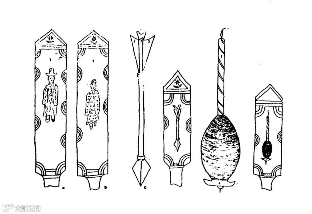 (f)为保存纺锤的木牌。