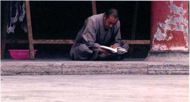 一修行者席地而坐苦读经书