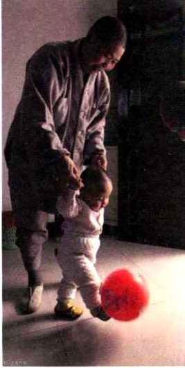 我在庙里看到9个月的缘缘开始学步,几个师父轮流着拉着缘缘在屋子里转来转去,偶尔缘缘听到师父们合掌念佛时,她就会手指佛堂。