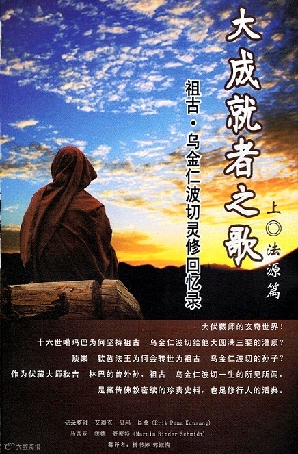 在寻求每件事串联在一起的轴线过程中,有个主题显得至关紧要,那就是传承不可获取的连续性。就如读者将会发现,祖古·乌金仁波切的曾祖父所发掘出的《新伏藏》(the New Treaures),以及代代相传的传承,在本书中扮演了重要角色之中。到最后,所有传承的溪流都将汇聚在无上化身的海洋之中。⑦这些故事的说书人就是这样一个具体化身。《大成就者之歌》是一则神秘的探险故事,进入一个年代与情境,全都迥异于我们大多数人所经历的一个旅程;它同时也是个朴实、充满人性的生动故事,有时却也让人心痛如绞。