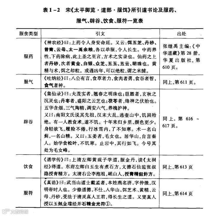 迄今为止,唐代王悬河及宋代李昉对服食(服饵)包括服药、服气、辟谷、饮食、服符五种类型这一分类思想,我们未见学术界和道教界提出异议,说明长期以来道士和学者们是认可这个看法的。