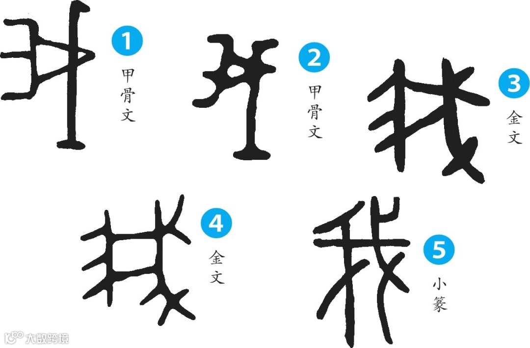 * “我”因为是兵器,所以有危险之意,再由此假借为第一人称的称谓。
