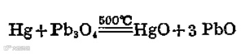 但是,魏伯阳提到的“黄芽”究竟是不是硫黄,很值得怀疑。前面提到,魏伯阳有这样的看法:“铅外黑,内怀金华”,“白者金精,黑者水基。水者道枢,其数为一。阴阳之始,玄含黄芽”。铅为黑,是水基,是道枢,是一,是始,是玄,因此,“玄含黄芽”似乎可以理解为“铅含黄芽”。但硫黄含于金属铅是说不通的,面黄丹(即氧化铅)含于铅倒是符合实际,因为黄丹就是由铅变化而成的。所以,“黄芽”也可能指黄丹。如此,“姹女”被制伏一说也成立,因为黄丹与水银在加热情况下可以发生下列化学反应: