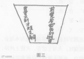 风水认为,如果将前窄后宽的棺材形阳宅倒置成前宽后窄的形状, 就变成了一个主凶的阳宅建筑形状,有所谓“前宽后窄失印逃走,穷苦不利才短令嗣”的说法,风水将此形称为“蛇尾鞭梢形”。(图3)