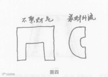 风水还认为:如果将八角形和圆形裁割成一半,呈 C 形和Ⅱ形,就变成了不吉利的扇形和缺口形建筑。说这种阳宅不聚财气,家财外流的危害。(图4)