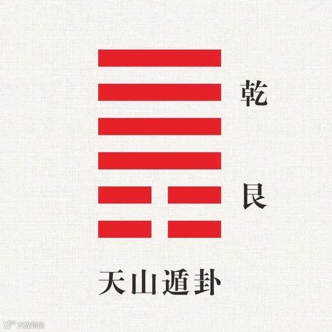 这是《象传》对《遯》卦卦象的解释。《遯》卦上体为乾,下体为艮,乾为天在上,艮为山在下,山高上逼,有峻极于天之势,天体无穷而远山退去,故有退之义。《象传》说天下有山,象征退避。《遯》卦揭示的正是退避的道理。这句话的意思是说,君子效法此象应当远避小人,不表现出对小人的憎恶之情而又保持自己的尊严。虽然隐退,但依然维持自己的尊严,坚守自己的德行,保持自己的道德风范。