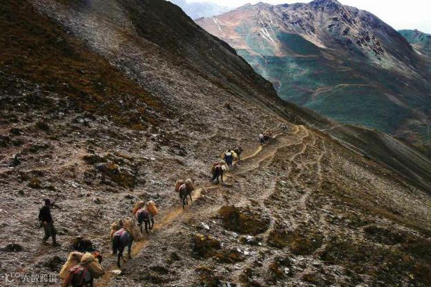 不丹大部分山区还没有发展现代交通,骡马是重要交通工具