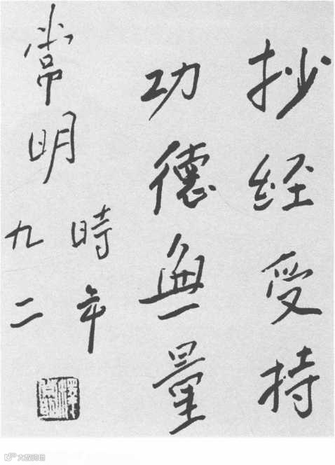 “没临帖的人写字,一看就是个野路子。”心一说,他依然坚持临帖,抄写《金刚经》。常明老和尚曾给他题词“抄经受持功德无量”,心一把此话装裱在自己的案头,日日激励自己,从不懈怠。