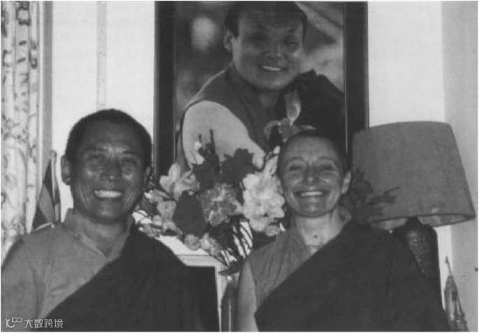 丹津•巴默与周甲仁波切摄于1997年,他们身后是已故的八世坎初仁波切画像。