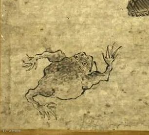 大英博物馆藏明代王问绘画作品:寒山拾得(和合二仙)与旺财金蟾图(局部)