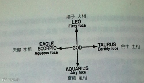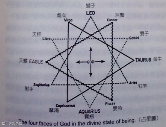 上帝的每一个面,都含有未显像的三个神性,这样十二宫的十二星座就成为: