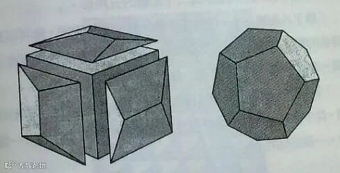 “一个常见的晶体,只能由三角形,长方形以及五角形所形成,长方形及五角形由三角形,四面体,八面体及二十面体所形成。正方形只能形成立体。五角形只有形成二十面体的五角形。”