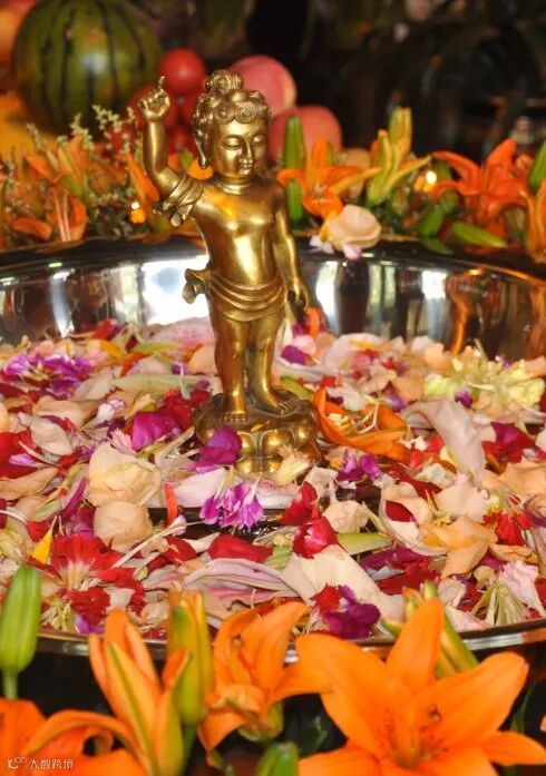 “天上天下,唯我独尊。”相传这句话是释迦牟尼诞生时说的。释迦牟尼属于古印度刹帝利种姓,父亲是迦毗罗卫国的净饭王,母亲是摩耶夫人。摩耶夫人怀孕足月,归宁途中,在都城郊外兰毗尼园中生下释迦太子。据经中说:太子从摩耶夫人的右肋出生,堕地而立,周行七步,步步生莲花。太子举头遍观四方,一手指天,一手指地,自称:“天上天下,唯我独尊。”此时,天雨香花,九龙吐水,为他沐浴。太子取名悉达多,意为“一切义成”。