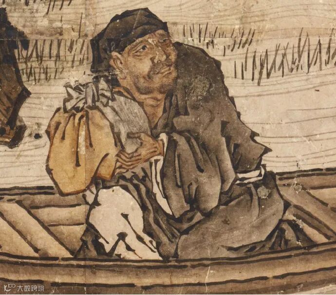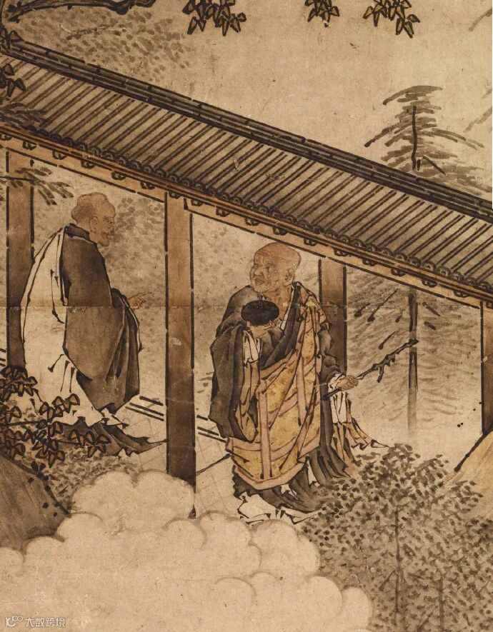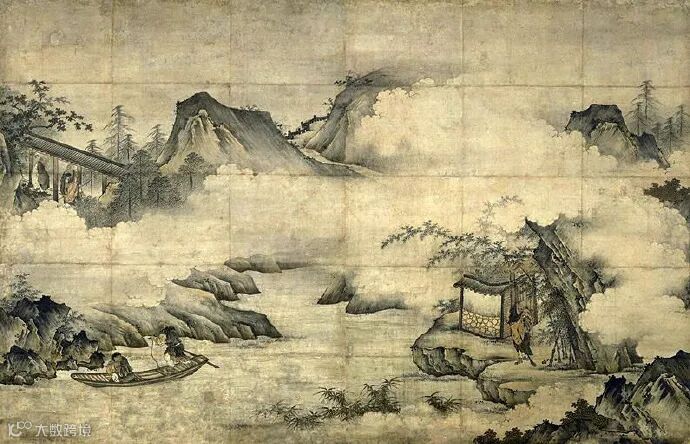 狩野元信绘《祖师图》之 五祖送六祖渡江图局部