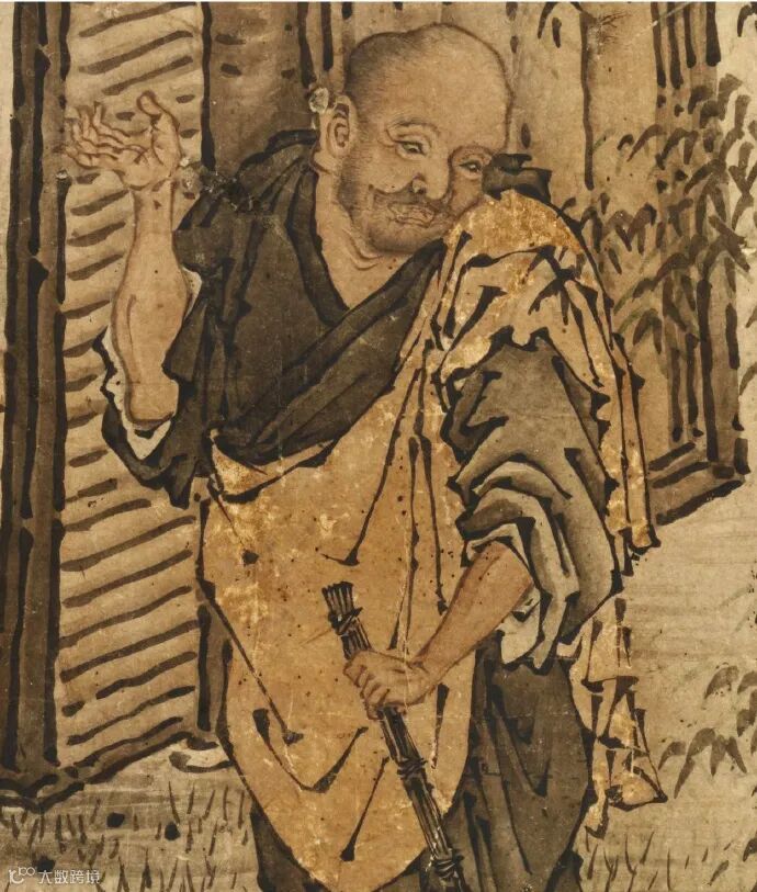 南宋 梁楷《八高僧图卷》之《智闲拥帚·回睨竹林》局部