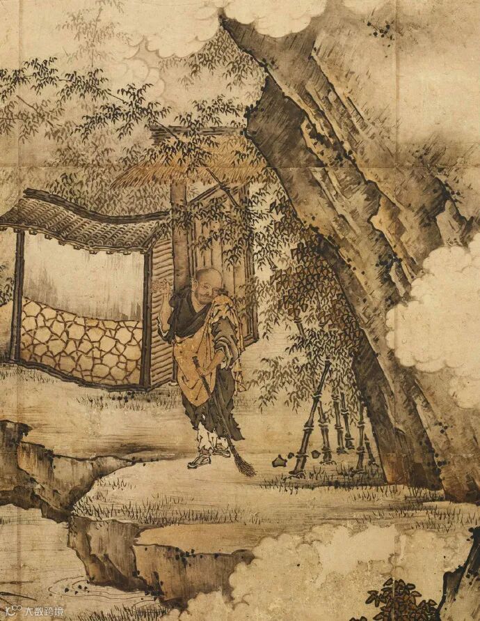 禅宗《祖师图》 之《香严击竹图》 日本室町时代后期著名画家---狩野元信(1476-1559)