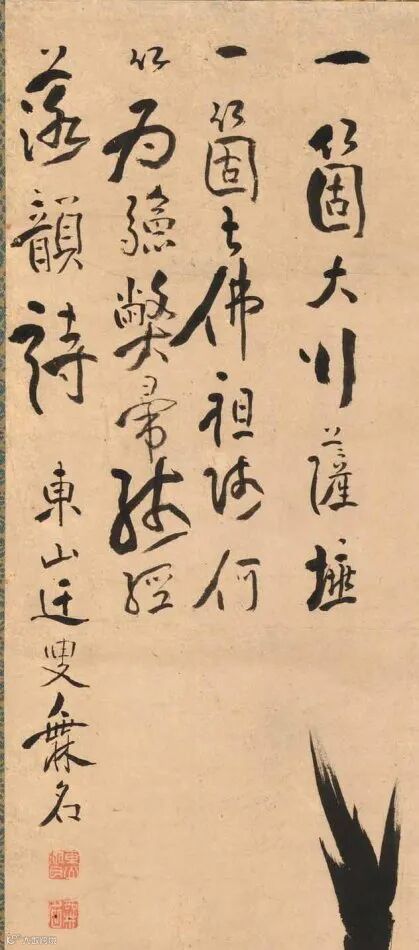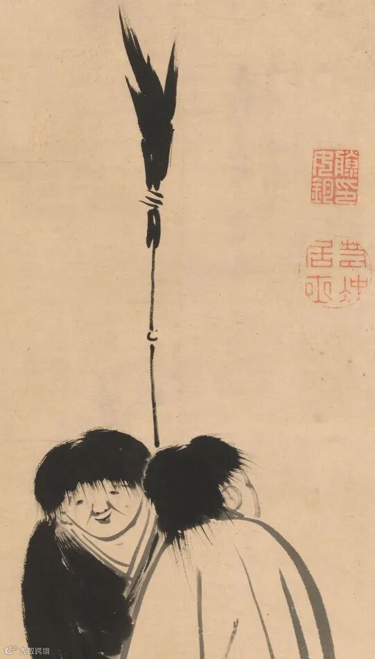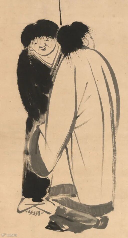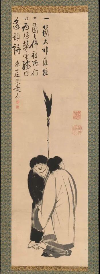 美国大都会艺术博物馆藏十八世纪禅画:伊藤若冲绘 池大雅赞 寒山拾得图