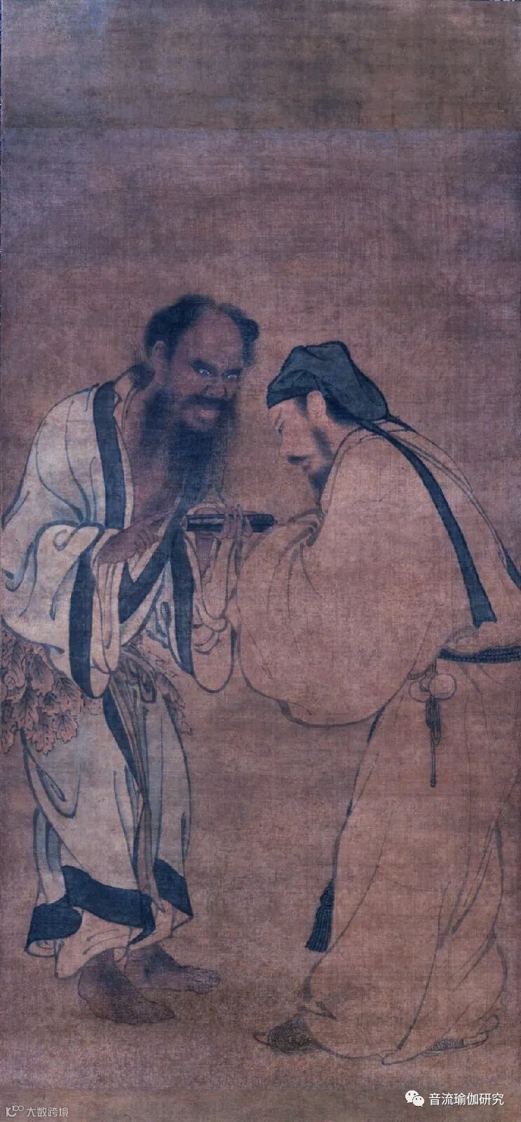 此图在日本称汉钟离权·吕洞宾问答图。是一幅值得仔细赏读品味的人物画作品。画作描写钟离权正授吕洞宾“不老先机”。“不老先机”,是怎样的不老先机?永生秘诀,升仙秘诀?画中两位仙人描写生动,钟离权俊目美冉,悉心说教,吕洞宾恭心聆受,虔敬谨慎。