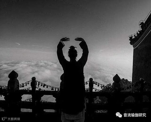 (5)小:双手于胸前合什,其他姿势如旧,存想自己幼年如三岁小顽童般站立阶前。如此天地间元炁和日月精华齐聚我身,达到吕祖“一粒粟中藏世界”和佛陀“芥子纳须弥山”的意境,体验出一种童稚的乐趣。