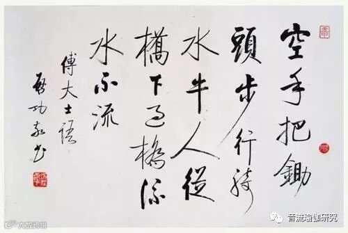 傅大士,又称善慧大士。这都是后世禅宗和佛教中人对他的尊称。(大士或开士,都是佛学对菩萨一辞意译的简称。)他是浙江东阳郡义乌县双林乡人,父名傅宣慈,母王氏。大士生于齐建武四年(公元四九七年),禅宗初祖达摩到中国时,他已二十三岁。本名翕(xi1:合,和顺)又说名弘,十六岁,娶刘妙光为妻。生二子,一名普建,一名普成。他在二十四岁时,和乡里中人同在稽亭浦捕鱼,捕到鱼后,他又把鱼笼沉入水中,一边祷祝着说:“去者适,止者留。”大家都笑他是“愚人”。