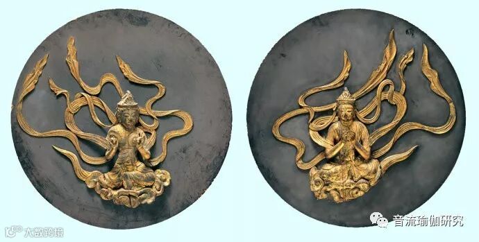 美国大都会艺术博物馆藏平安时代扁柏雕刻镀金:二伎乐飞天像